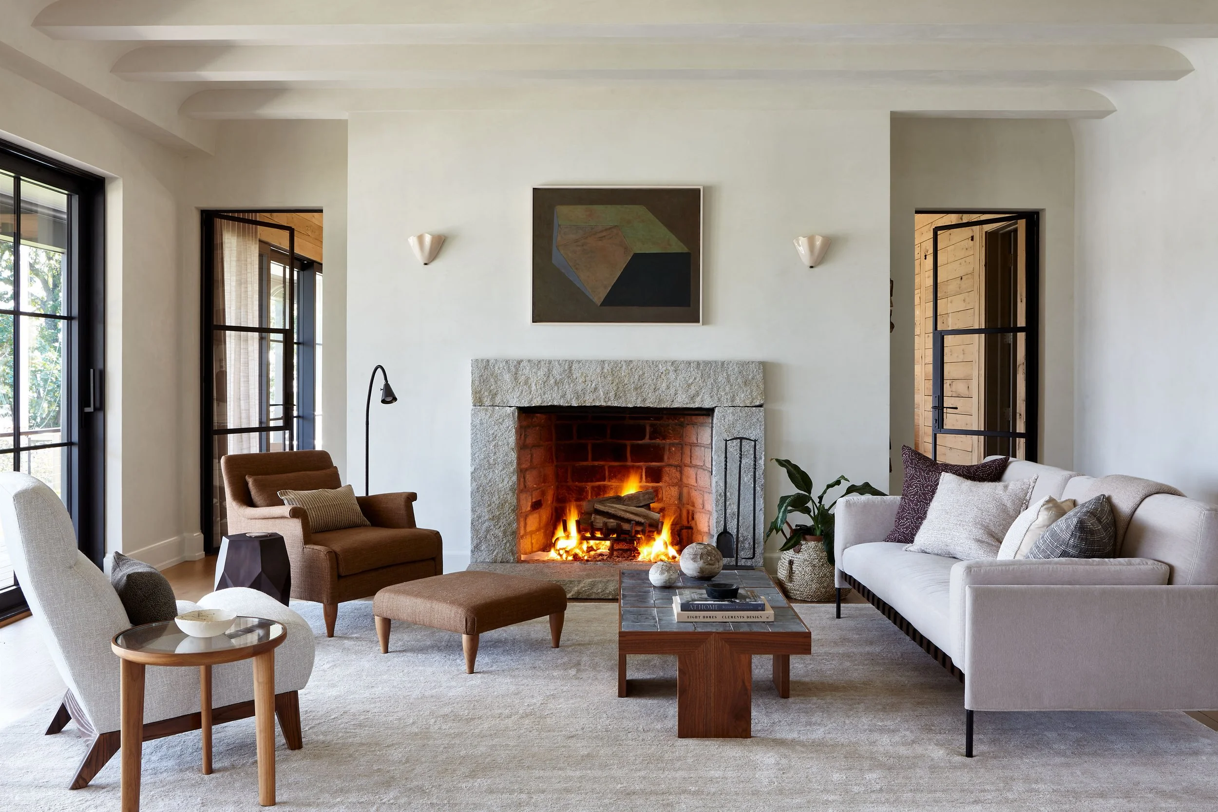 Hardware: Pull handles on sliders, bay window and casements, SW4 triplex, classic arched handles, doors with oil-rubbed Lancia handles.